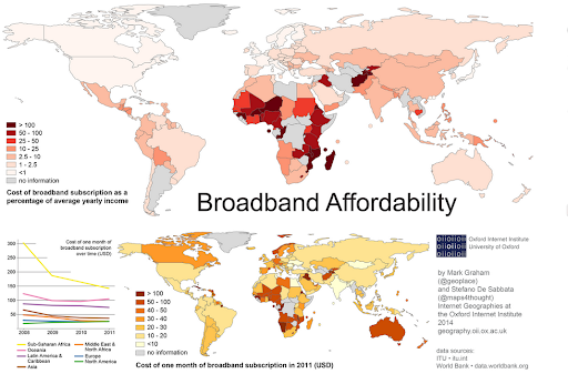 Many rural and remote areas currently have limited access to high-speed internet infrastructure. Starlink's satellite constellation can offer broadband-level speeds to these areas, enabling residents to access online education, telehealth services, e-commerce, and other online resources without geographical constraints. Currently, in terms of both broadband affordability and fixed subscription, African and Latin America & Caribbean regions significantly lag. With the expansion of satellite internet technology, these regions should see significant development and economic growth in the near future.